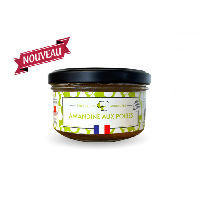 Crème UHT (crème, protéine de lait,carraghénanes), poudre d’amande (20,7%) (fruits à coques), sucre, poire (10,3%), œufs (10,3%), amidon de maïs, amande amère (0,4%) (fruits à coques).